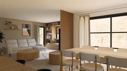 Projet d’aménagement complet d’une maison familiale à Loctudy, pensé comme une résidence secondaire entre fonctionnalité et douceur de vivre. Le travail a porté sur la réorganisation des espaces du rez-de-chaussée et de l’étage, la création de rangements sur mesure et la mise en place d’ambiances naturelles inspirées du bord de mer. L’objectif était de concevoir un intérieur fluide, lumineux et chaleureux, capable d’accueillir à la fois la vie quotidienne et les séjours en famille, avec une attention particulière portée à la modularité des pièces et au confort des usages.